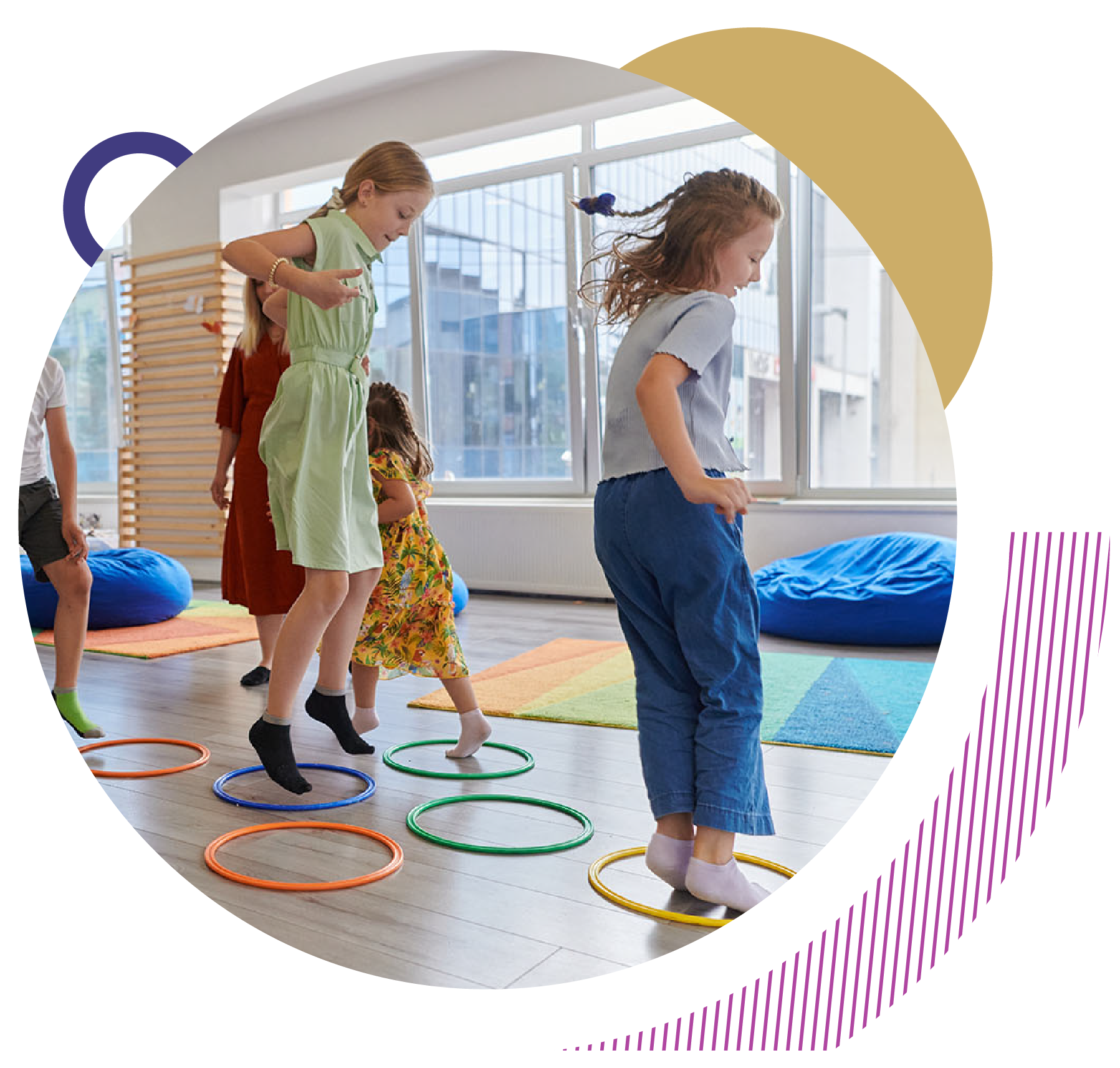 - Actividades que involucren saltos, giros o carreras para repasar conceptos.
