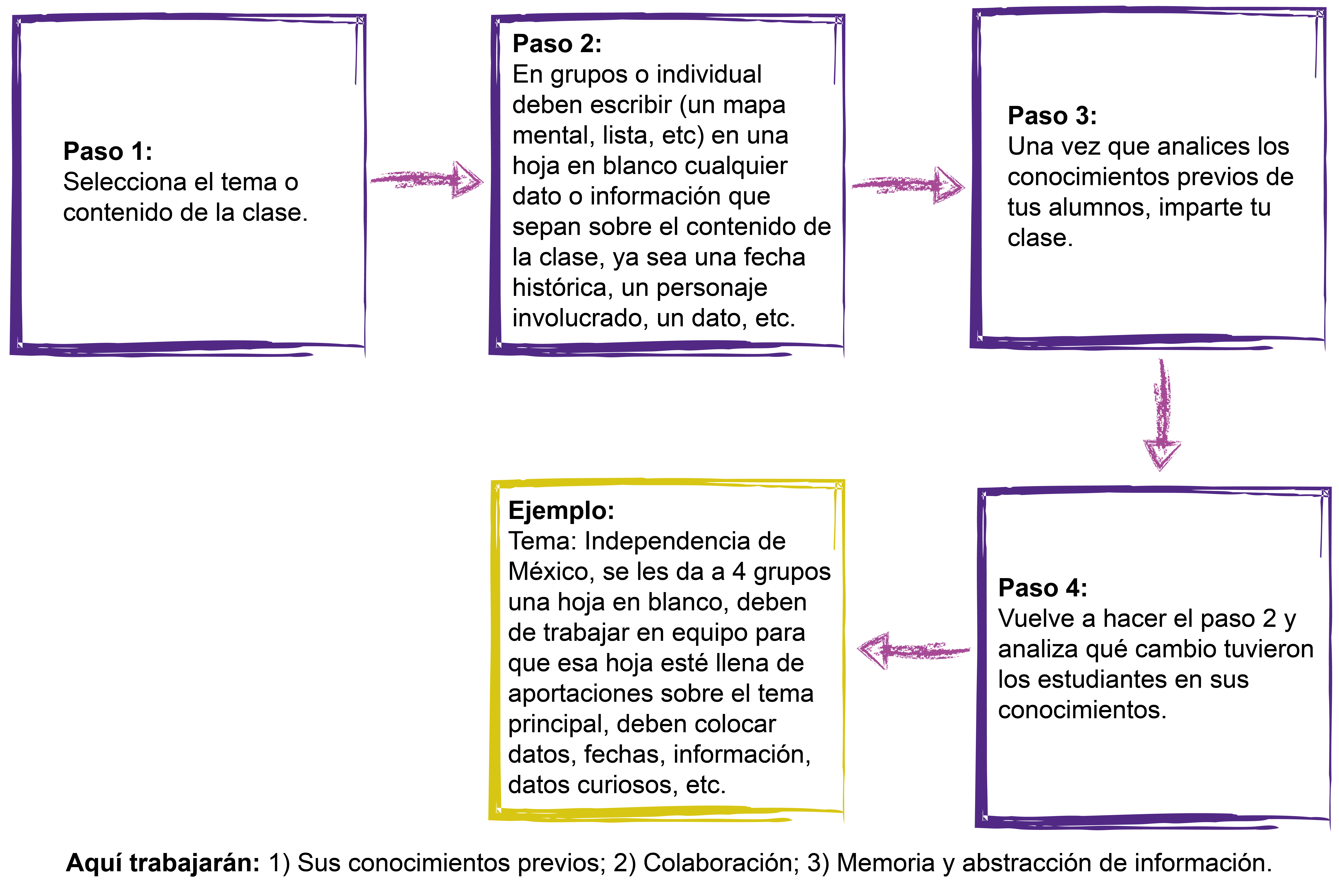 Aprendizaje y cognición Contestar un examen o ejercicio colaborativo para saber sus conocimientos previos y posteriores al tema.